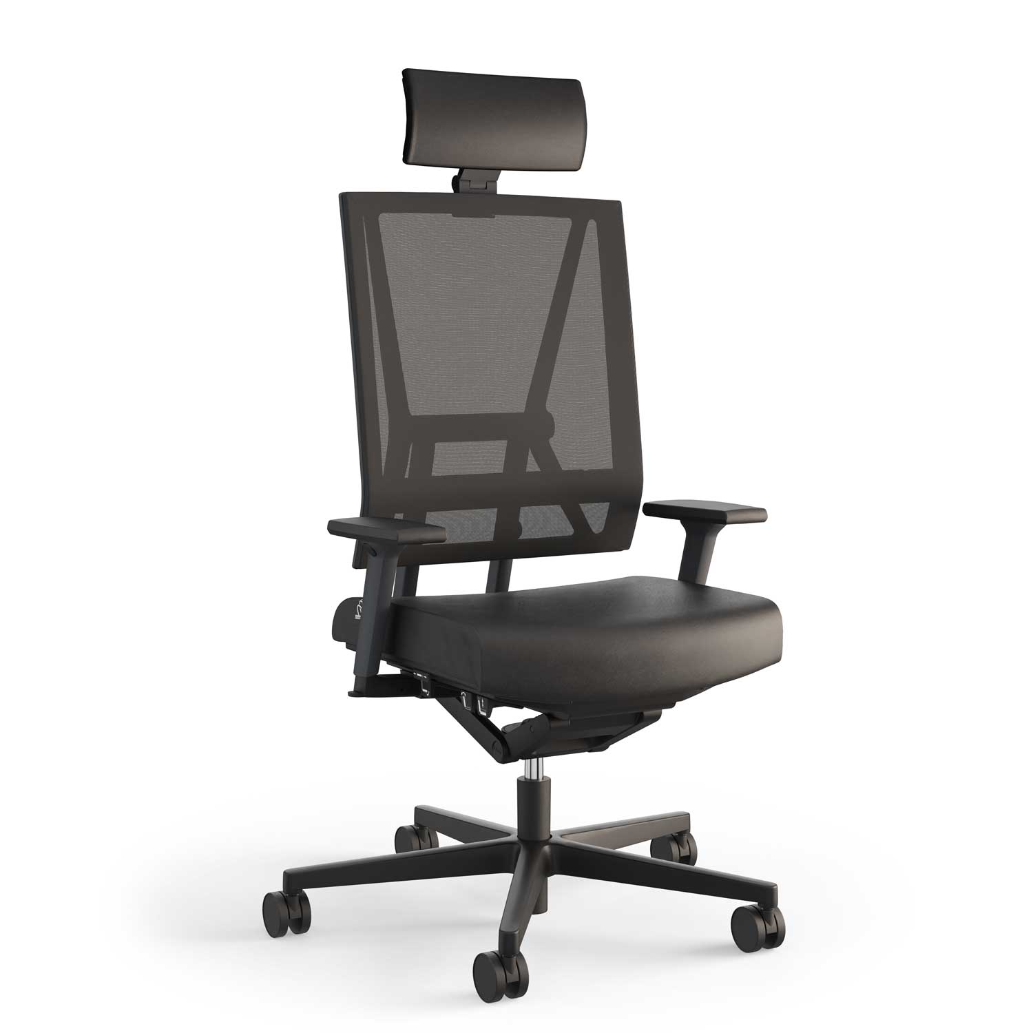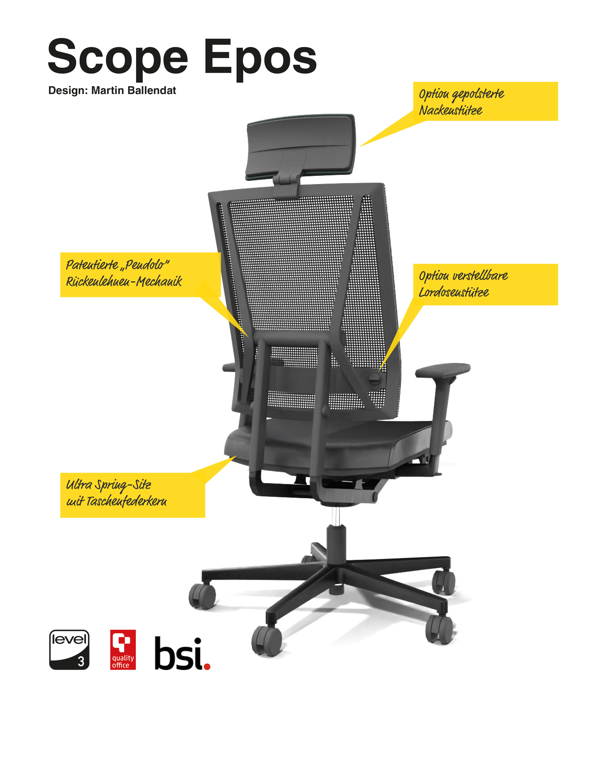 Der Scope Epos ist die moderne Interpretation des Viasit-Topmodells Scope mit schwarz matt lackierten Aluminium-Komponenten, 4D-Armlehnen und UltraSpring-Sitz.